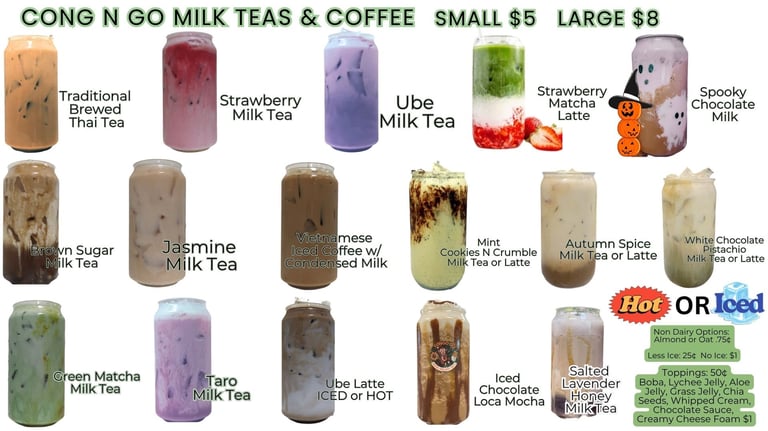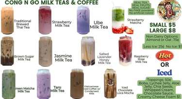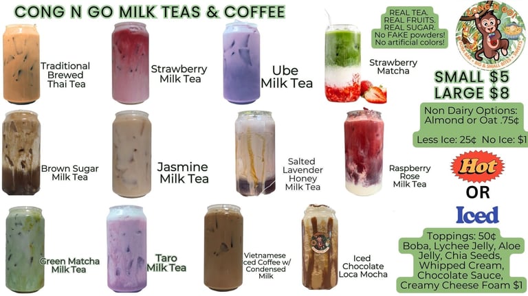 Indulge in our refreshing boba drinks, Small bites or Big Bites and Sweets always made with the freshest ingredients and no artificial flavors. Menu Subject to change seasonally!
